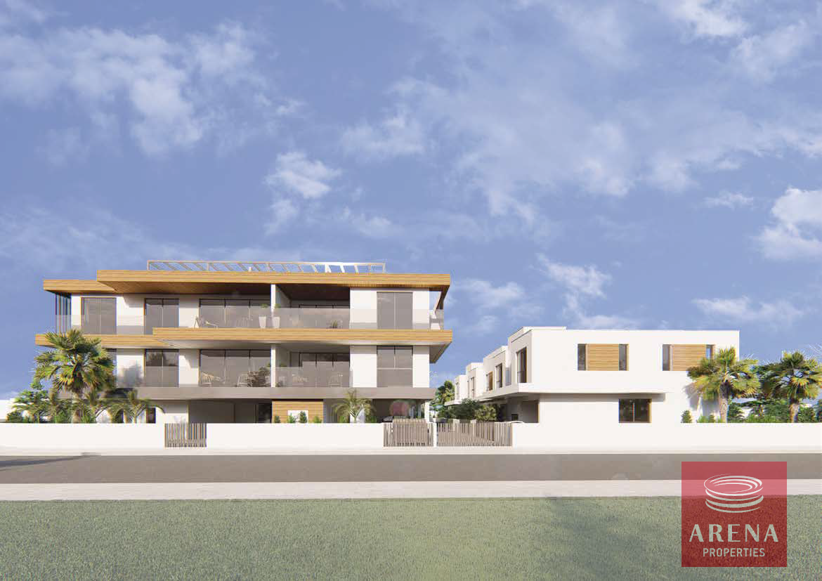 The new project of modern apartments and townhouses in Derynia is for sale.