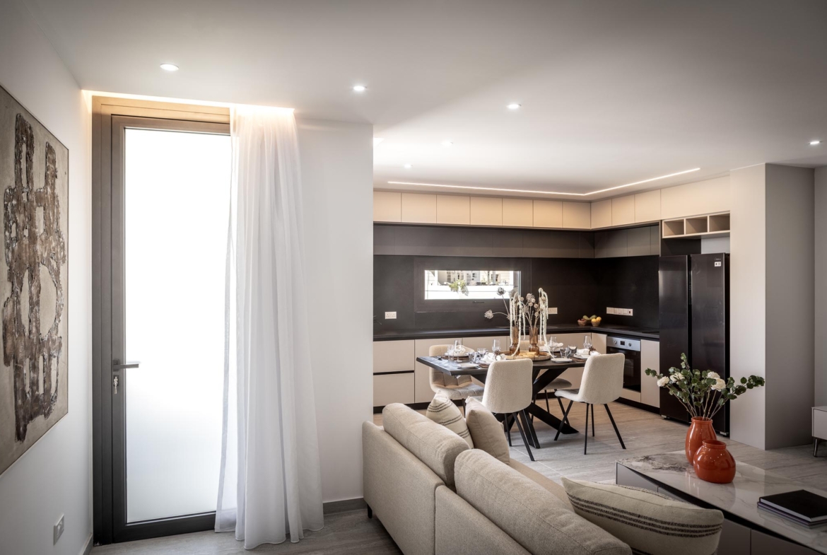 This deluxe building, strategically positioned in central Larnaca, offers five sophisticated apartments that redefine luxury living. This development showcases exclusive two, and three-bedroom apartments and a commercial unit with contemporary designs, seamlessly blending visionary architecture with elegance amidst lush greenery. The central location ensures convenience, charm, and efficient connections throughout the city, making this project an ideal haven for families, couples, and professionals seeking a residence that harmonizes residential living with easy access to city amenities.
