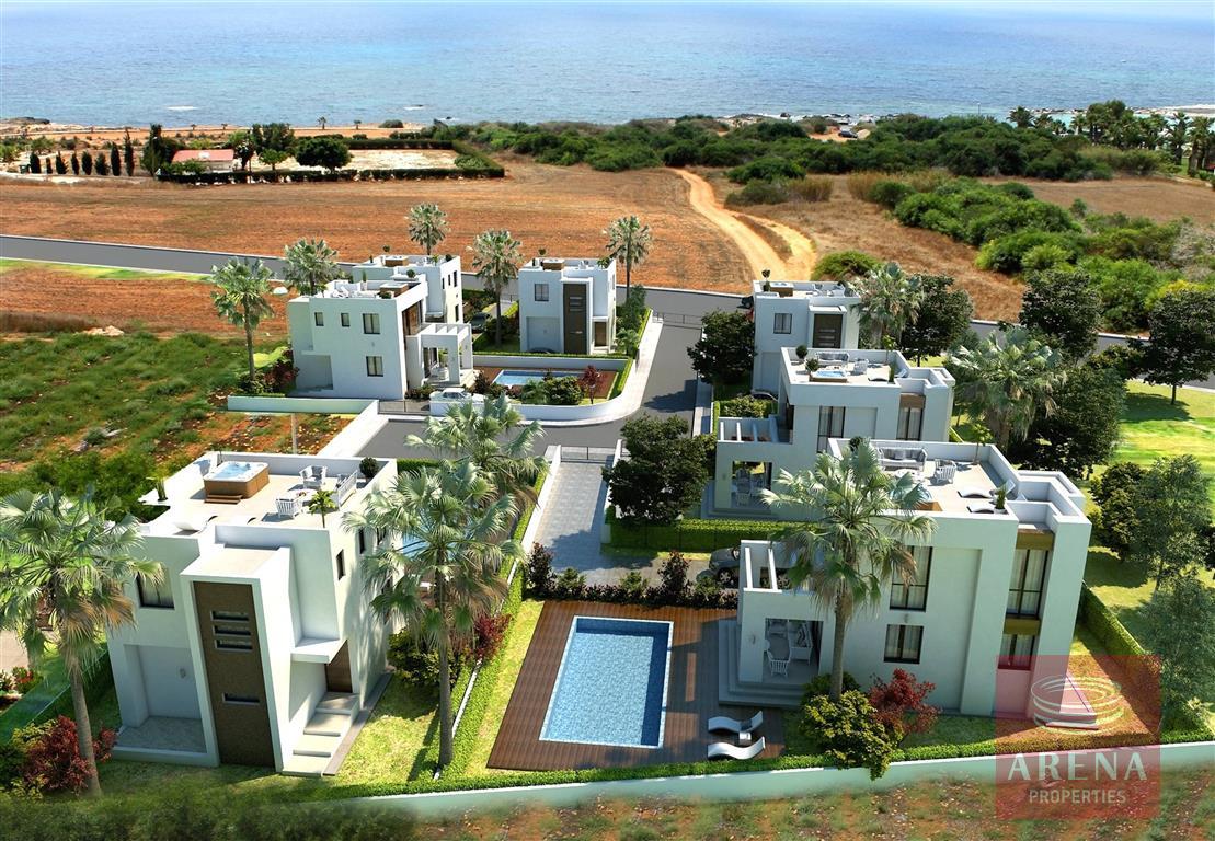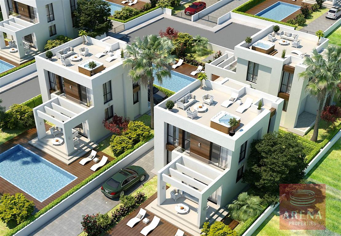 It will be an exclusive gated community of seven boutique villas located within walking distance of the picturesque Potamos, Ayia Thekla Beach and the Marina. With large plots of up to 473 m2 each property affords a feeling of privacy and space. The contemporary design with clean architectural lines explores the dynamics of space to produce a seamless blend of indoor and outdoor living. The open-plan layout of the ground floor, with plenty of glass which allows an abundance of natural light to enter, creates a light and bright feel. On the first floor, there is an en-suite master bedroom, two spacious guest bedrooms, the main bathroom and a balcony.