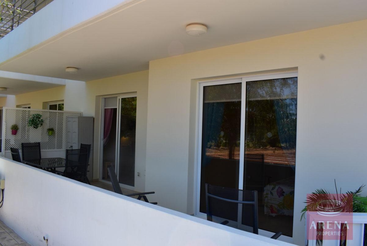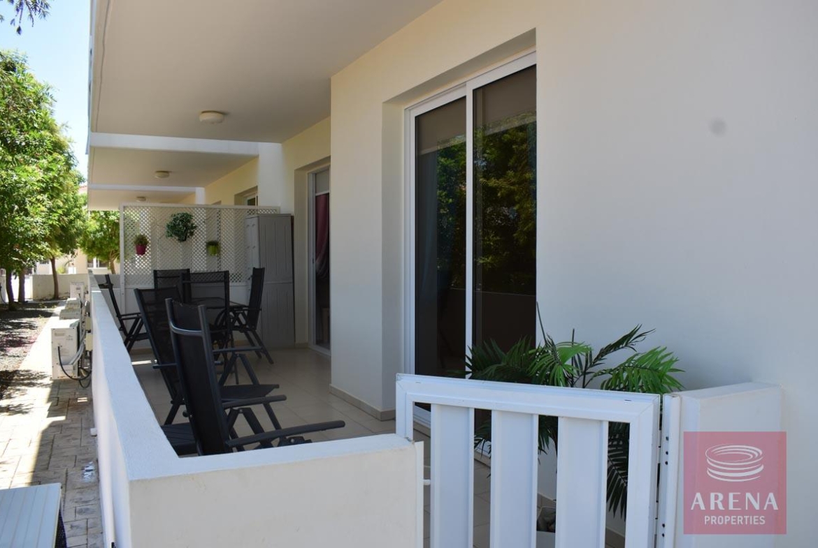 This 2 bedroom ground floor resale apt in Kapparis with large veranda surrounded with garden and green area. Enter into an open-plan living area with large double-glazed glass doors out to a veranda, providing lounge and dining options both indoor and out.