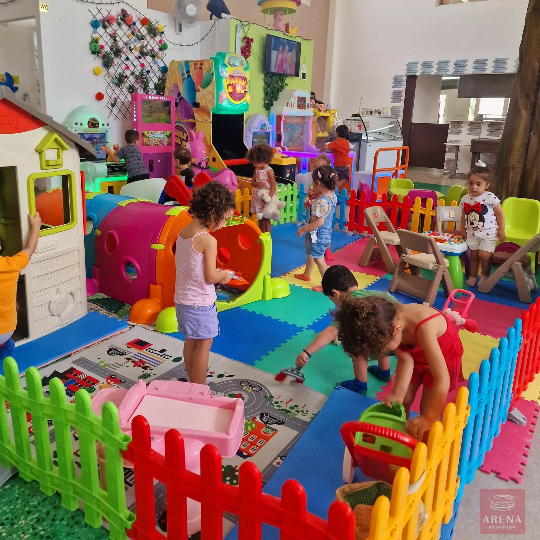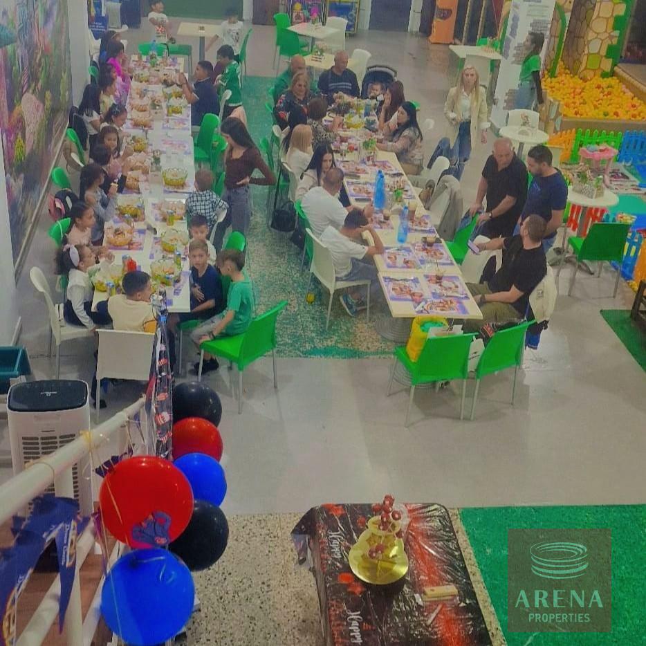A restaurant with a children’s playground for sale in the Larnaca area. It has an interior space (420sq.m), an exterior space (300sq.m) that is fully equipped, and parking. It is in operation and has events booked for the coming months. The equipment (kitchen – toys big and small – table seats – TVs, etc.)