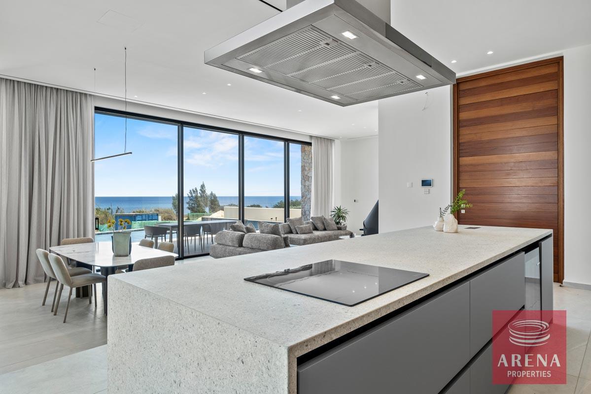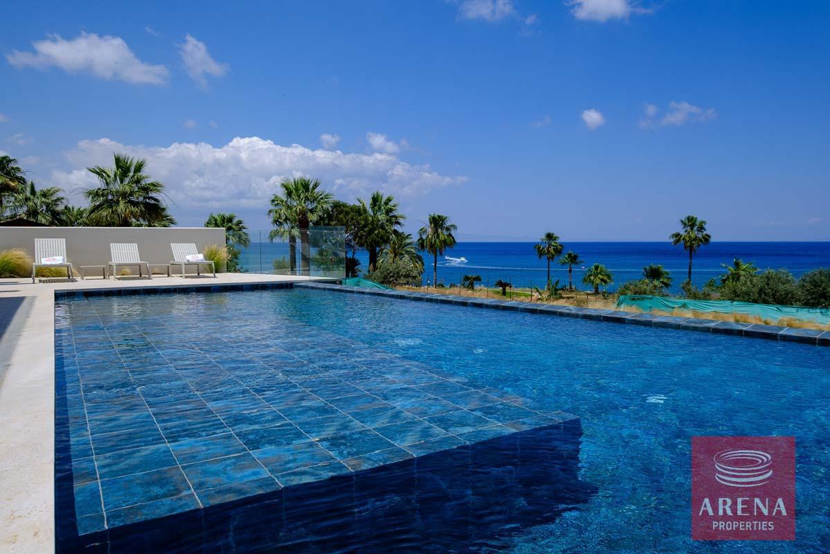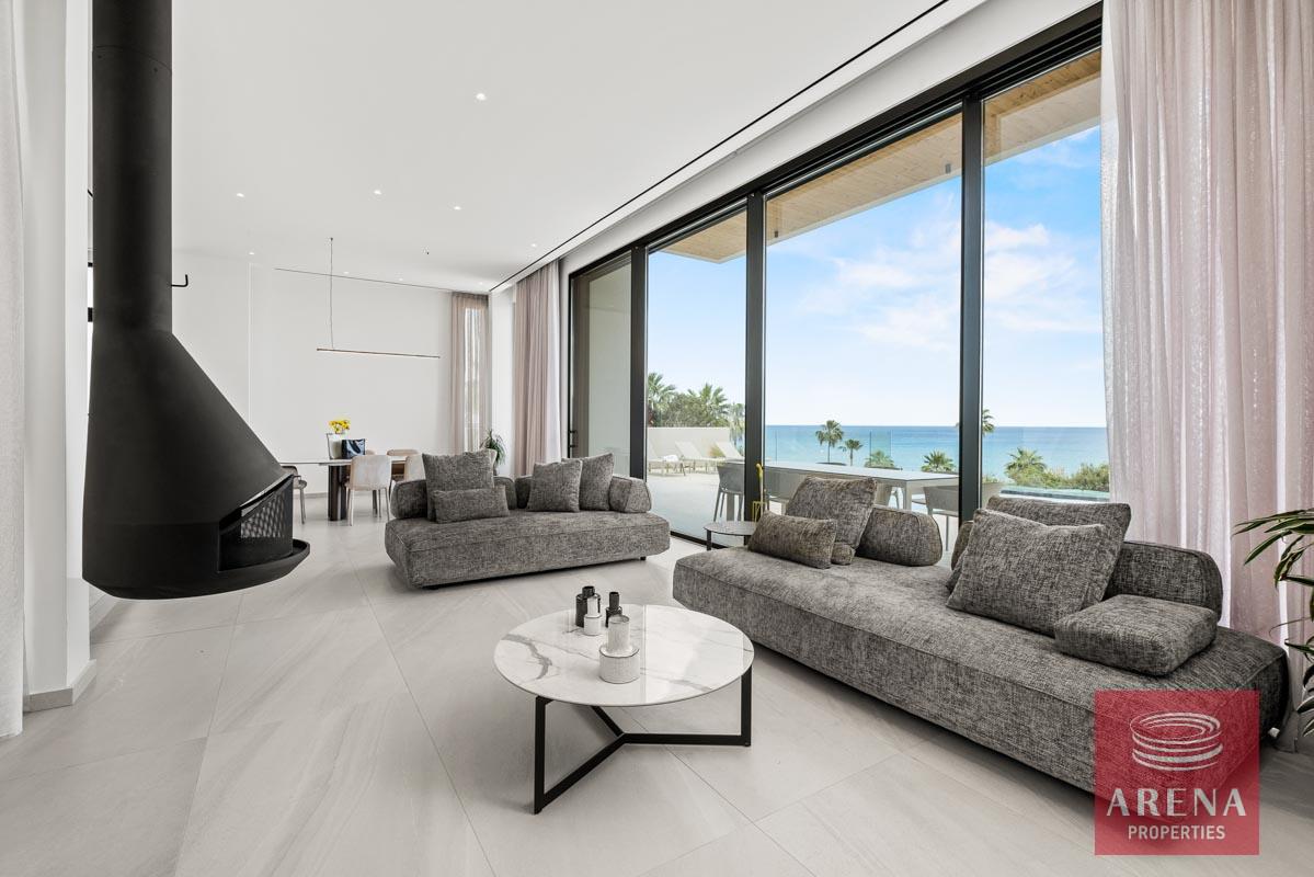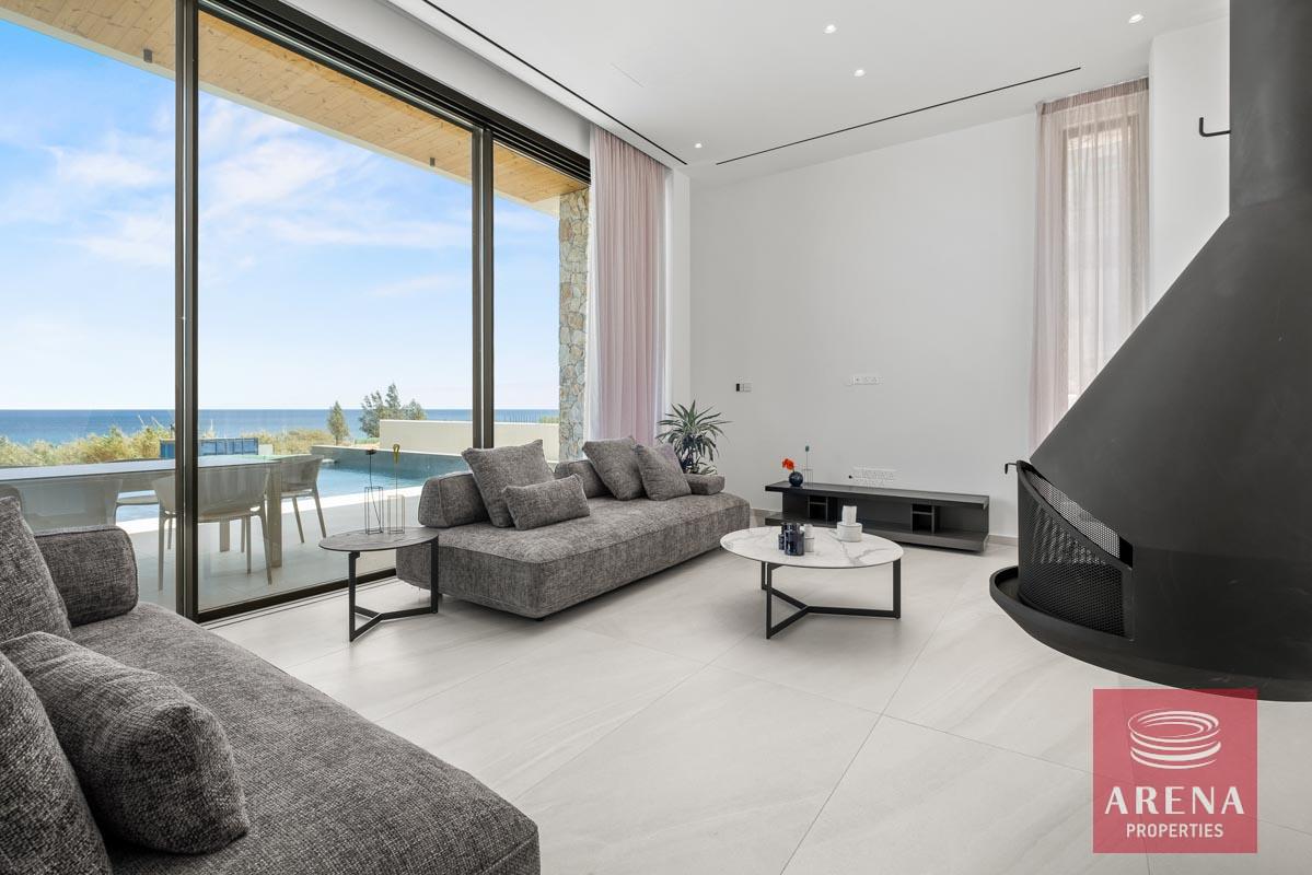 Situated on a generous seafront plot on the beautiful Protaras shoreline, this mansion is one of four in a luxury private development. Using natural materials such as wood and stone, this sprawling five-bedroom villa blends into the surrounding environment. Enjoy spectacular, uninterrupted views of the Mediterranean and high-end features such as heated swimming pools, fireplaces, and large landscaped gardens.
