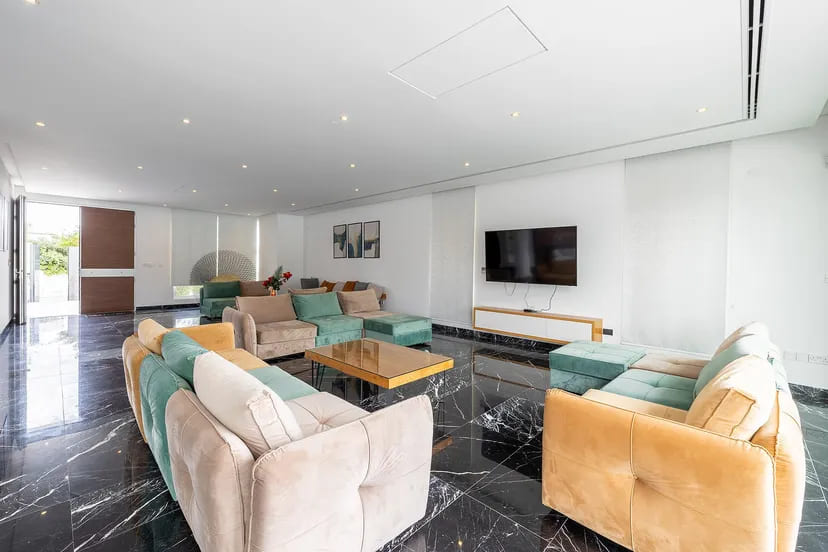 Exquisite materials—natural marble, rich wood, and bespoke finishes—enhance every corner, while cutting-edge systems, including GIRA smart home controls, full CCTV surveillance, and VRV air conditioning, ensure both luxury and security.