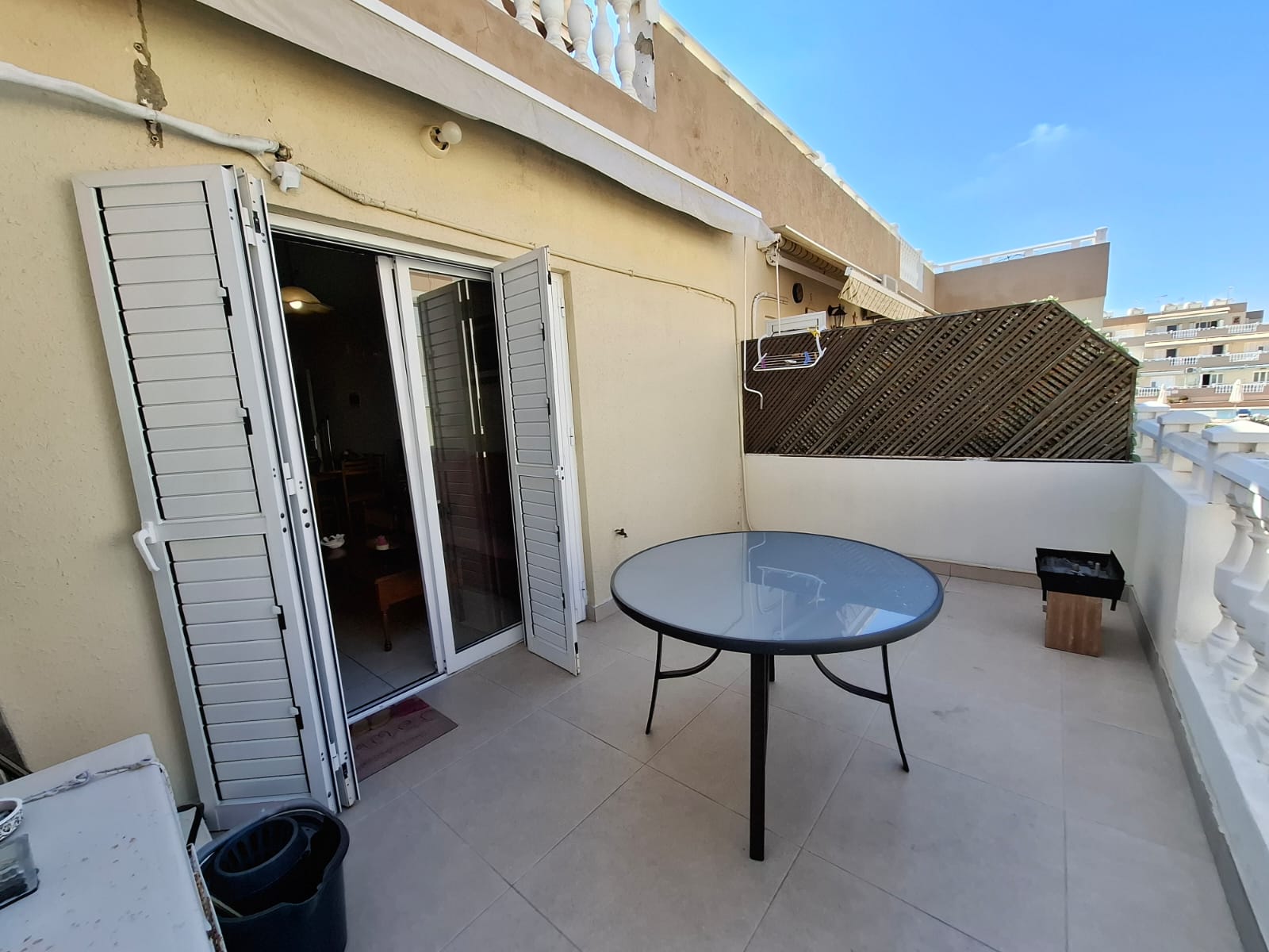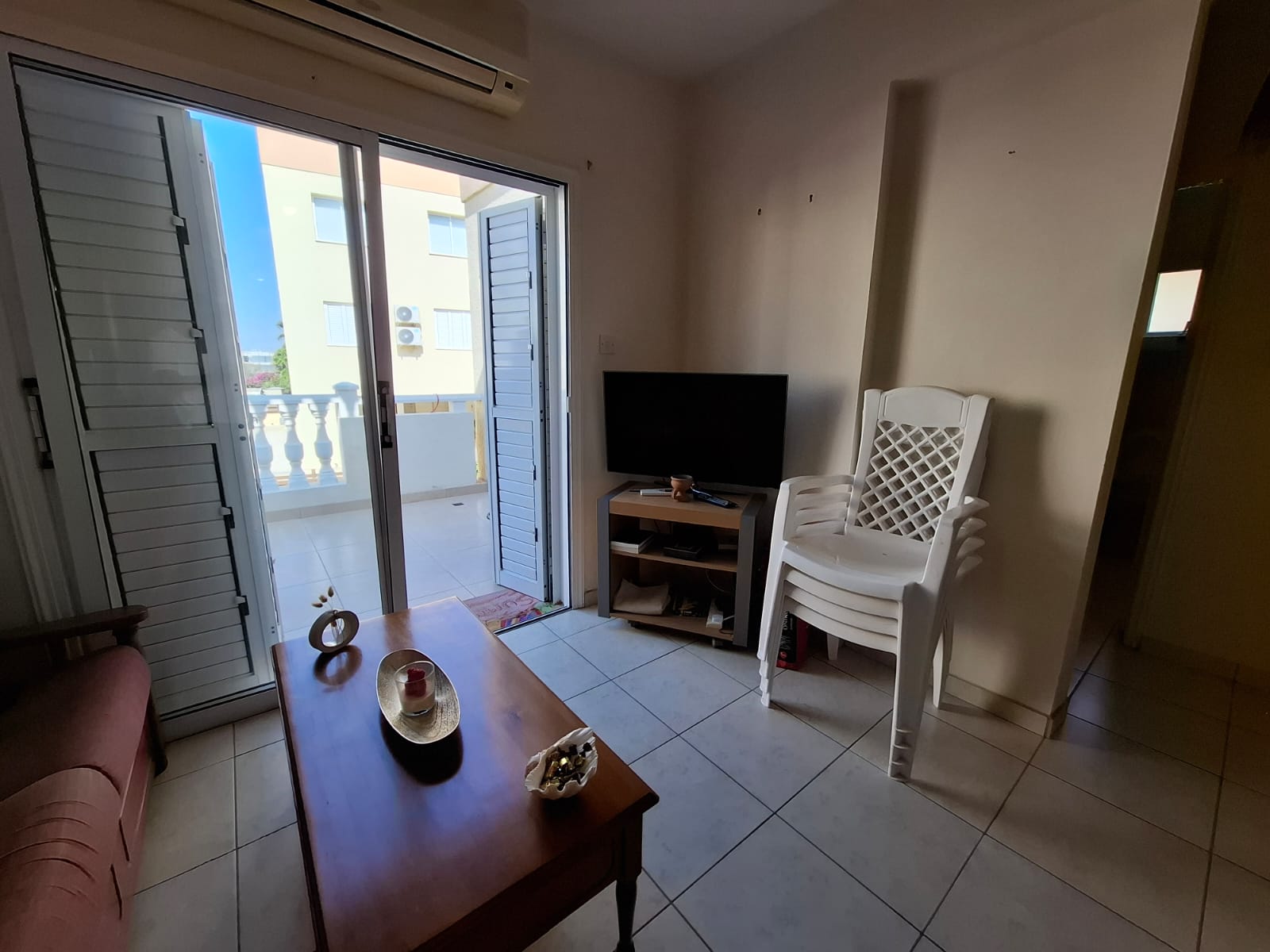 The 68m² interior is thoughtfully laid out, featuring a comfortable living and dining area that leads to a fantastic 15m² covered veranda – your private spot for enjoying morning coffee or evening drinks. The apartment is fully furnished and equipped with air conditioning throughout, ensuring year-round comfort. The practical kitchen is fitted with all essentials, while the two bedrooms offer peaceful retreats with the added benefit of shutters for a perfect night’s sleep.