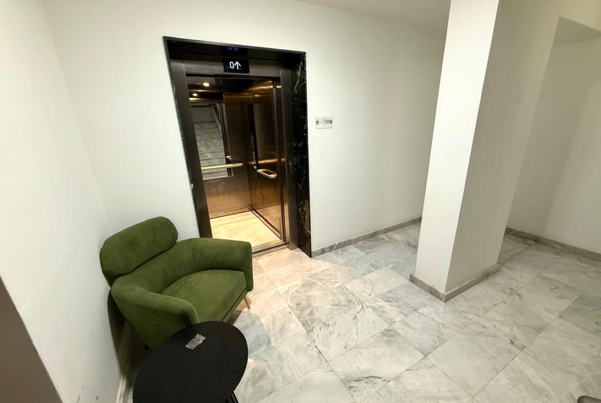 Convenience & Security: The building features a modern elevator and offers a dedicated covered parking space.