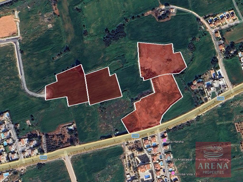 The property for sale concerns 4 touristic abutting/ nearby fields, in Ayia Thekla in Sotira’s Municipality, in Famagusta District. The property is located approximately 2 km west from Agia Napa marina and approximately 210 meters south from Famagusta – Larnaca motorway.