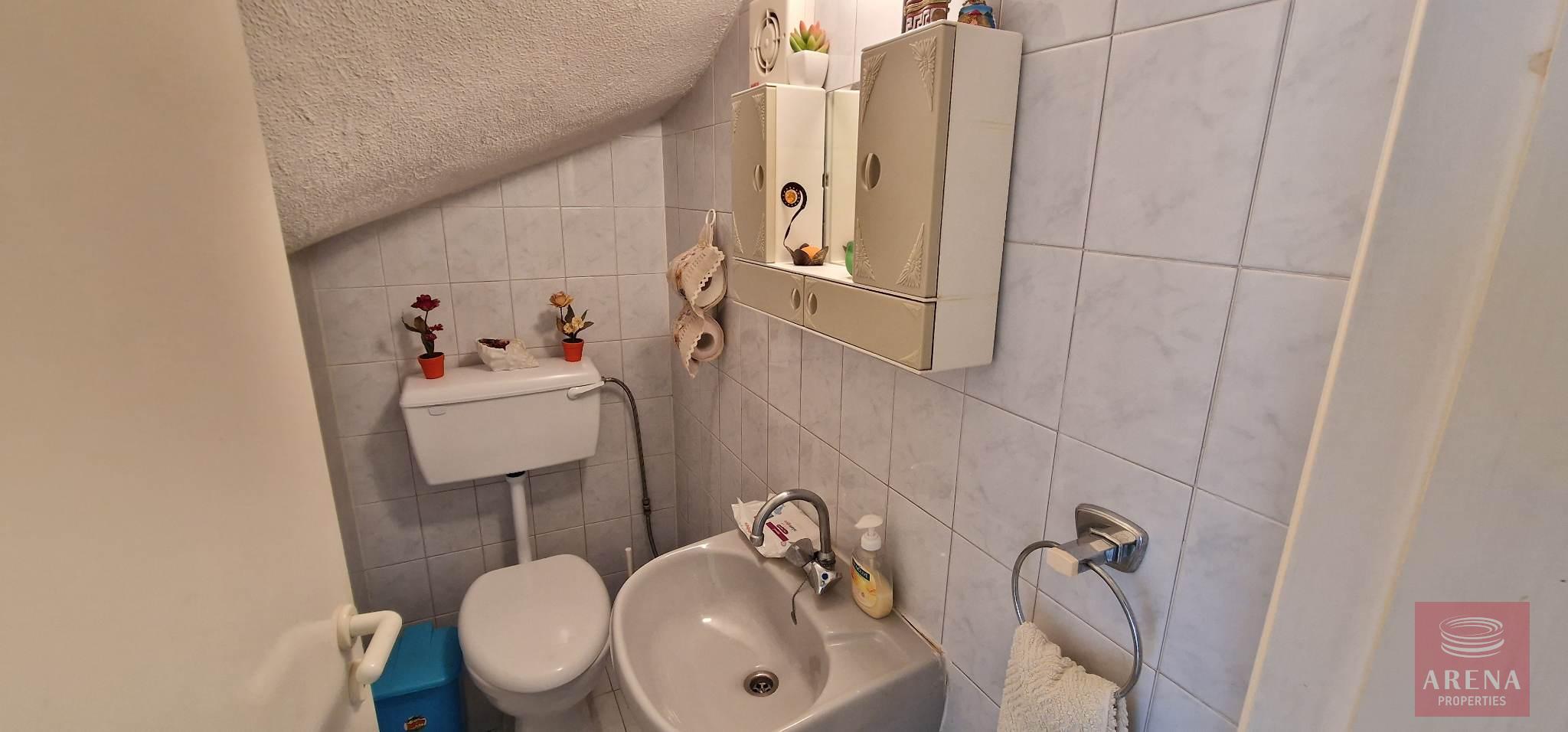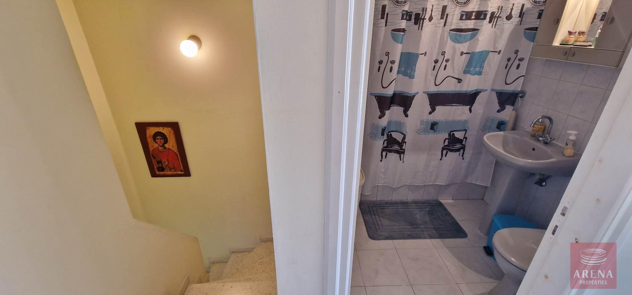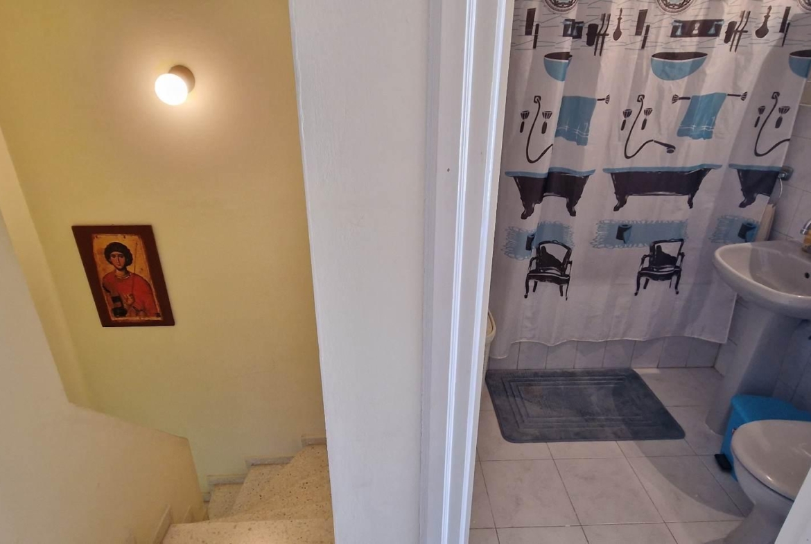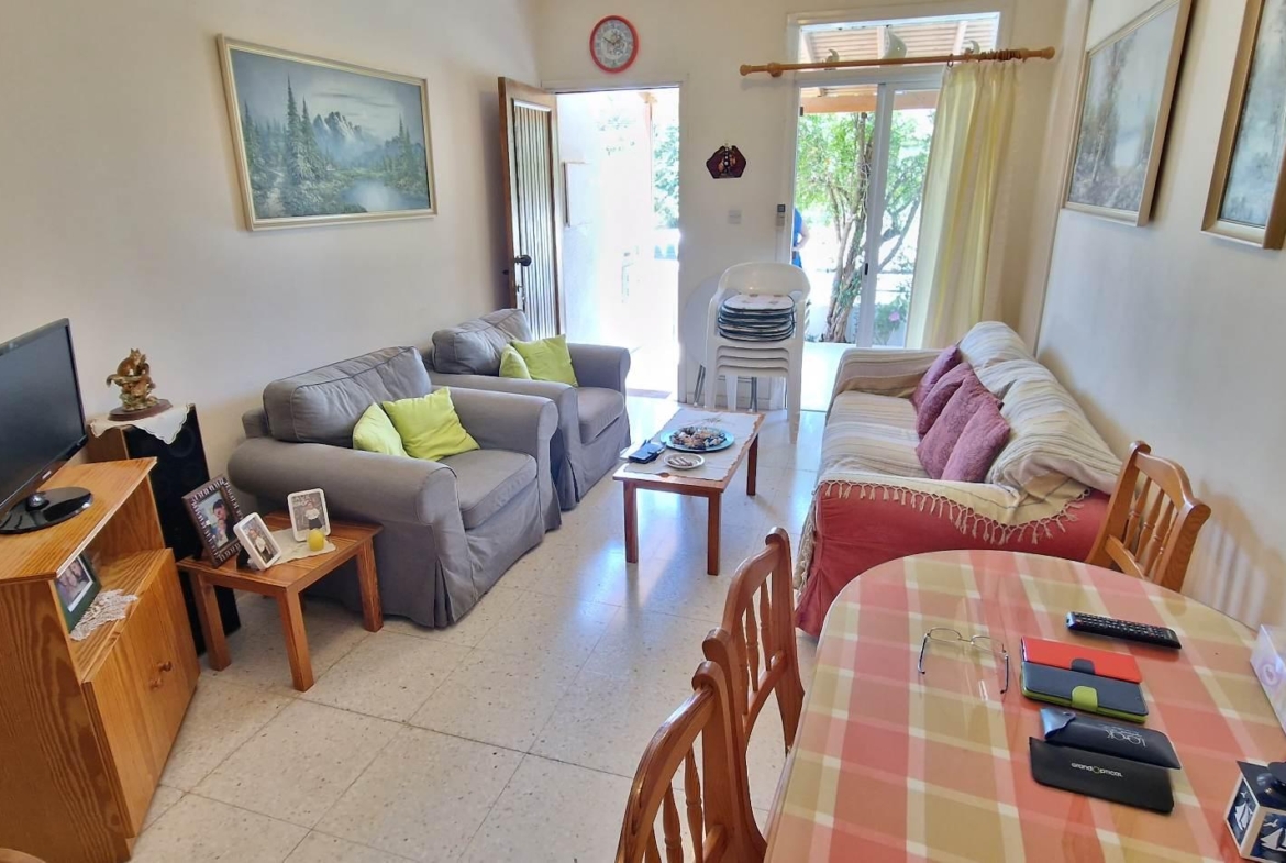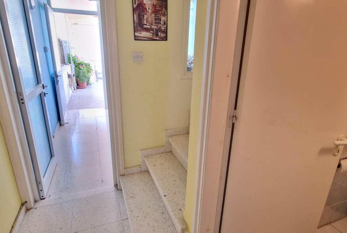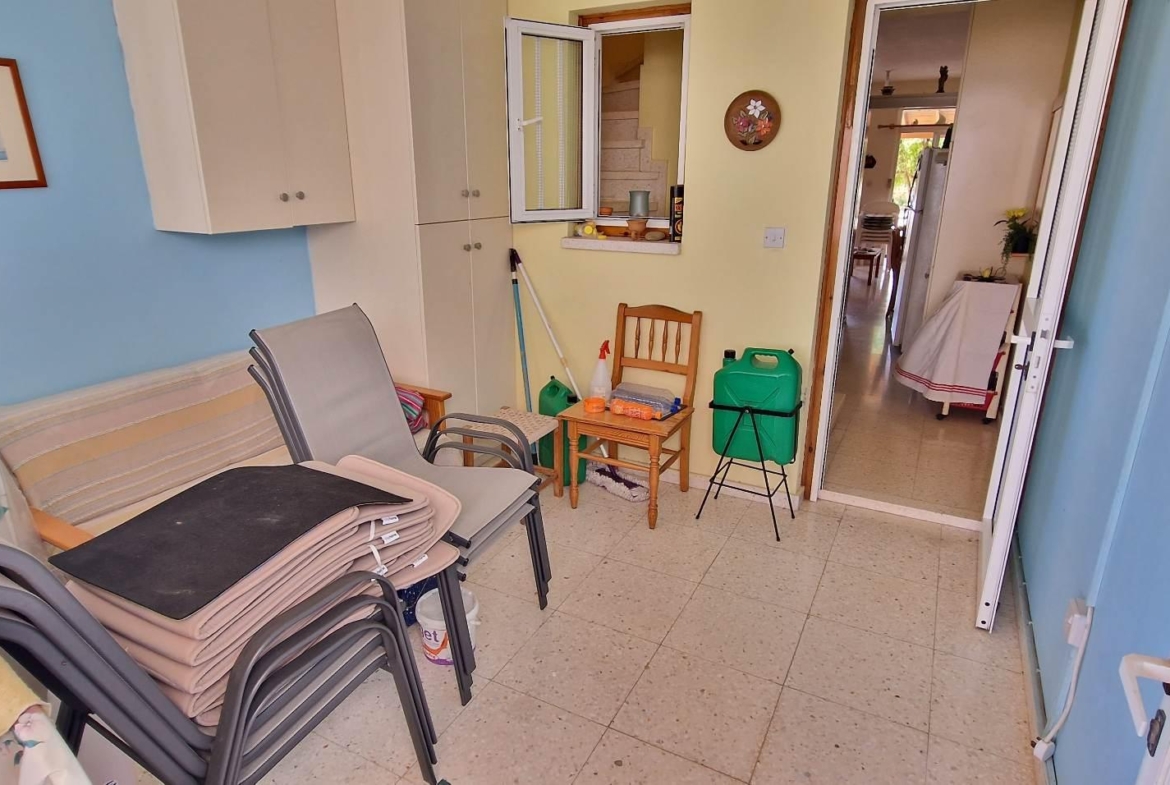 This is a 3 bedroom semi-detached townhouse in Oroklini, with 2 bedrooms upstairs and 1 room downstairs, which can be used as a bedroom, an office, a playroom or any other use that one chooses.