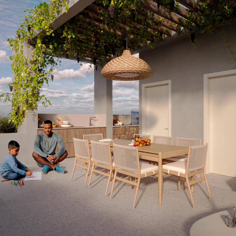 ✔ Spacious open-plan living and dining area, leading to a 18sqm covered veranda.
