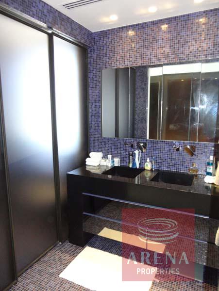 The fully equipped modern kitchen features Blum fittings and Gaggenau appliances. Step onto the furnished terrace to relish al fresco dining against the backdrop of the mesmerizing Mediterranean Sea. A twin bedroom and guest cloakroom complete this level.