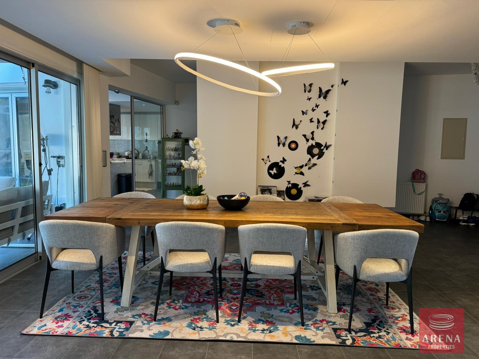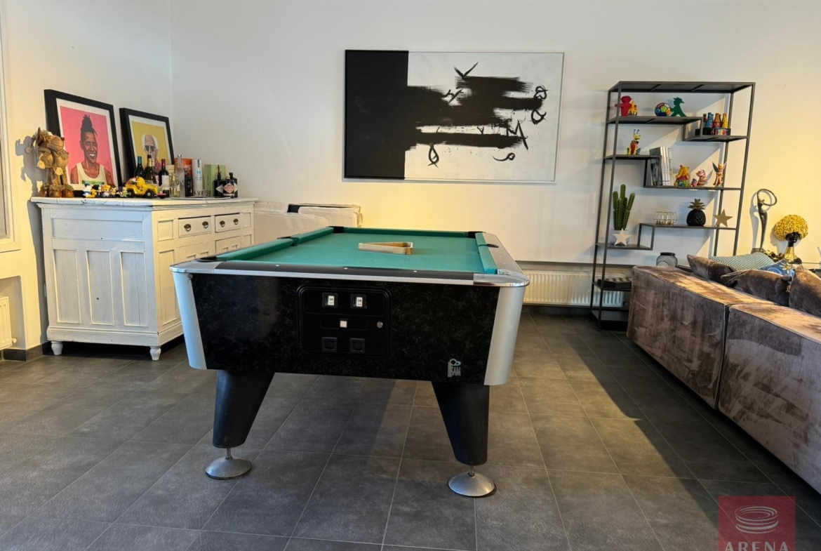 The seperate TV area with its fireplace is ideal for a relaxing movie night or a coffee break throughout the day looking at the beautiful garden. The spacious dining area has ample space to accommodate big parties and family gatherings. The seperate office area consists of two desks for studying.