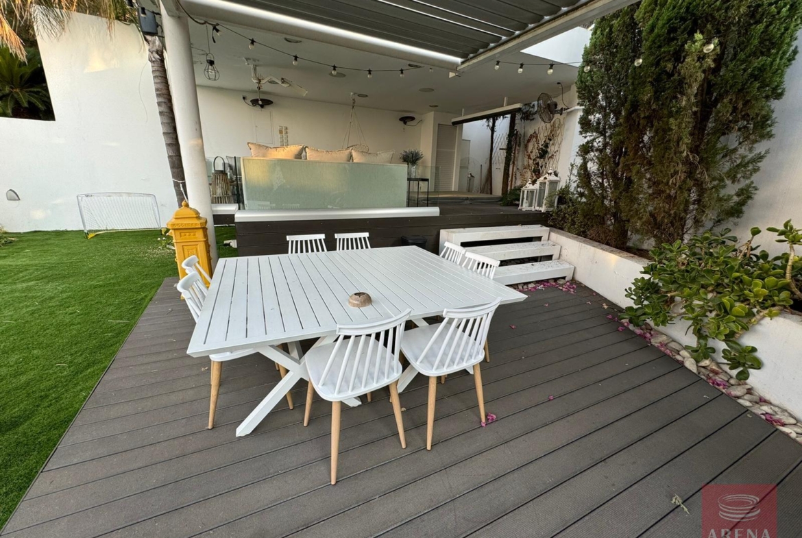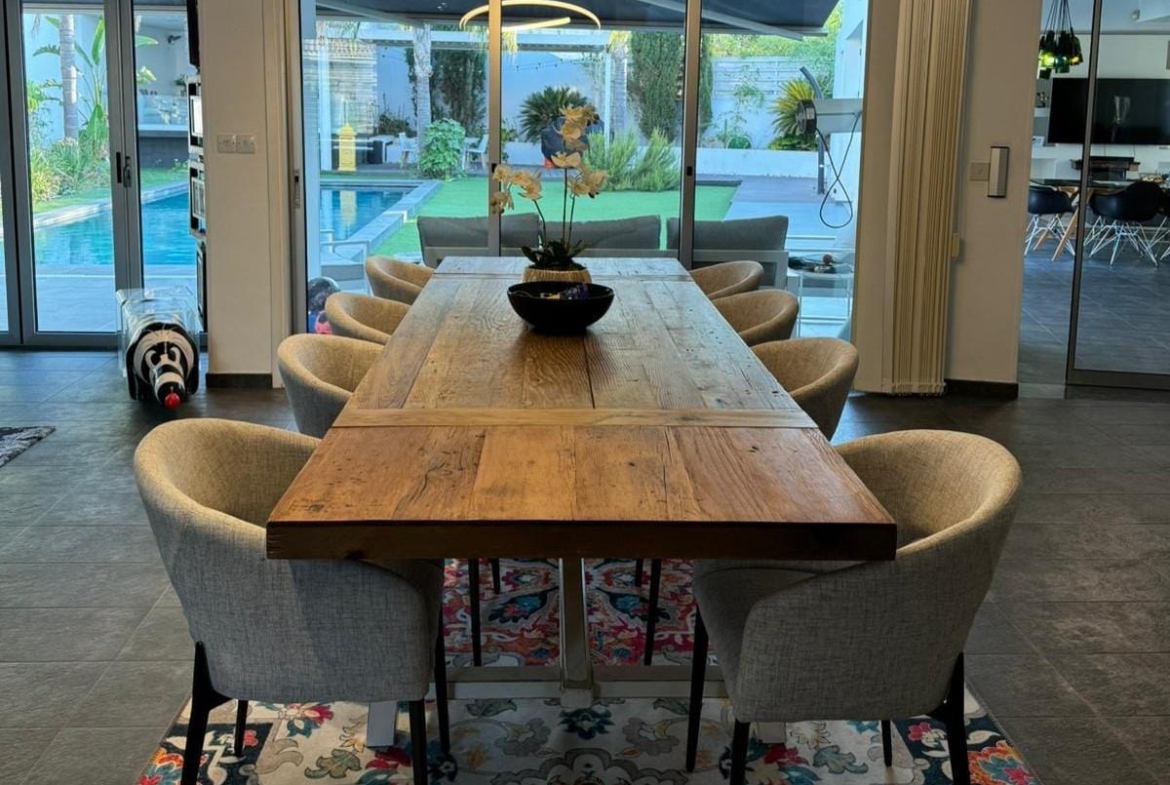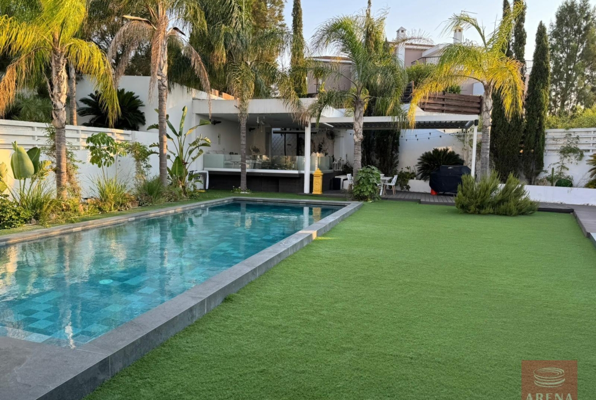 The house is fully furnished with top quality designer furniture that combine modern with antique elements. Its open plan design opens out in a beautiful mature garden with a stunning swimming pool and elevated jaccuzzi area. We call it heaven’s corner.