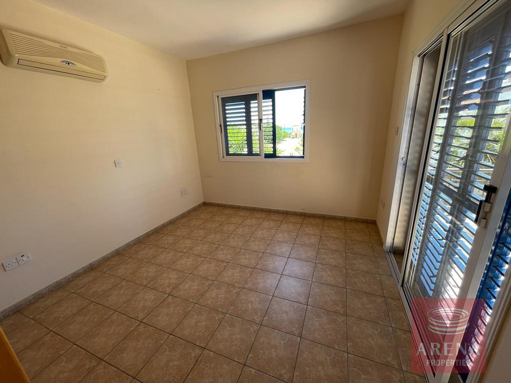 This unfurnished  3-bedroom villa is located in Ayia Thekla and is available for long-term rental. The villa sits on a huge plot with mature gardens and is less than 500m from the beautiful coastline. The villa has a spacious lounge, off-set kitchen, one bedroom, and a guest WC with shower on the ground floor, and there are 2 bedrooms and a family bathroom on the first floor. All bedroom windows have aluminum shutters, and the villa has air conditioning throughout.