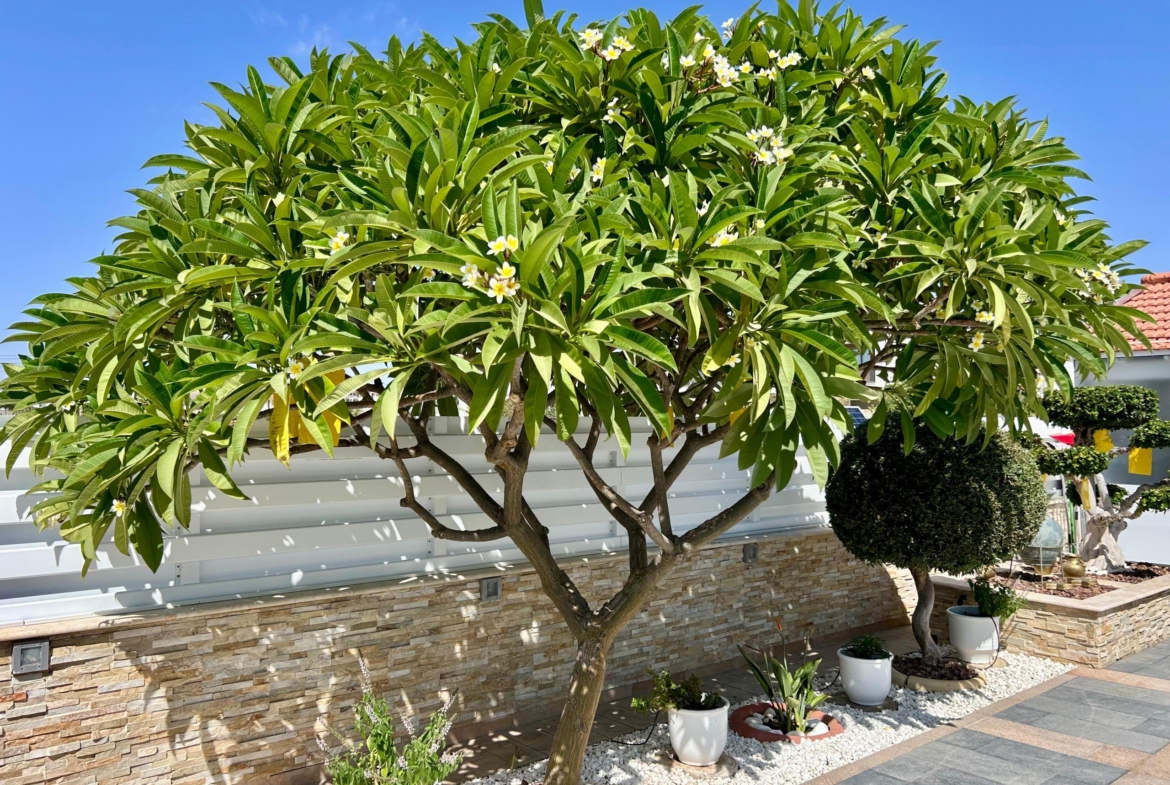 Step into your own private oasis, where a stunning 5x9m private swimming pool takes centre stage, surrounded by a mature garden filled with the scent of citrus and the shade of fruit trees. This is more than a house; it’s a forever home.
